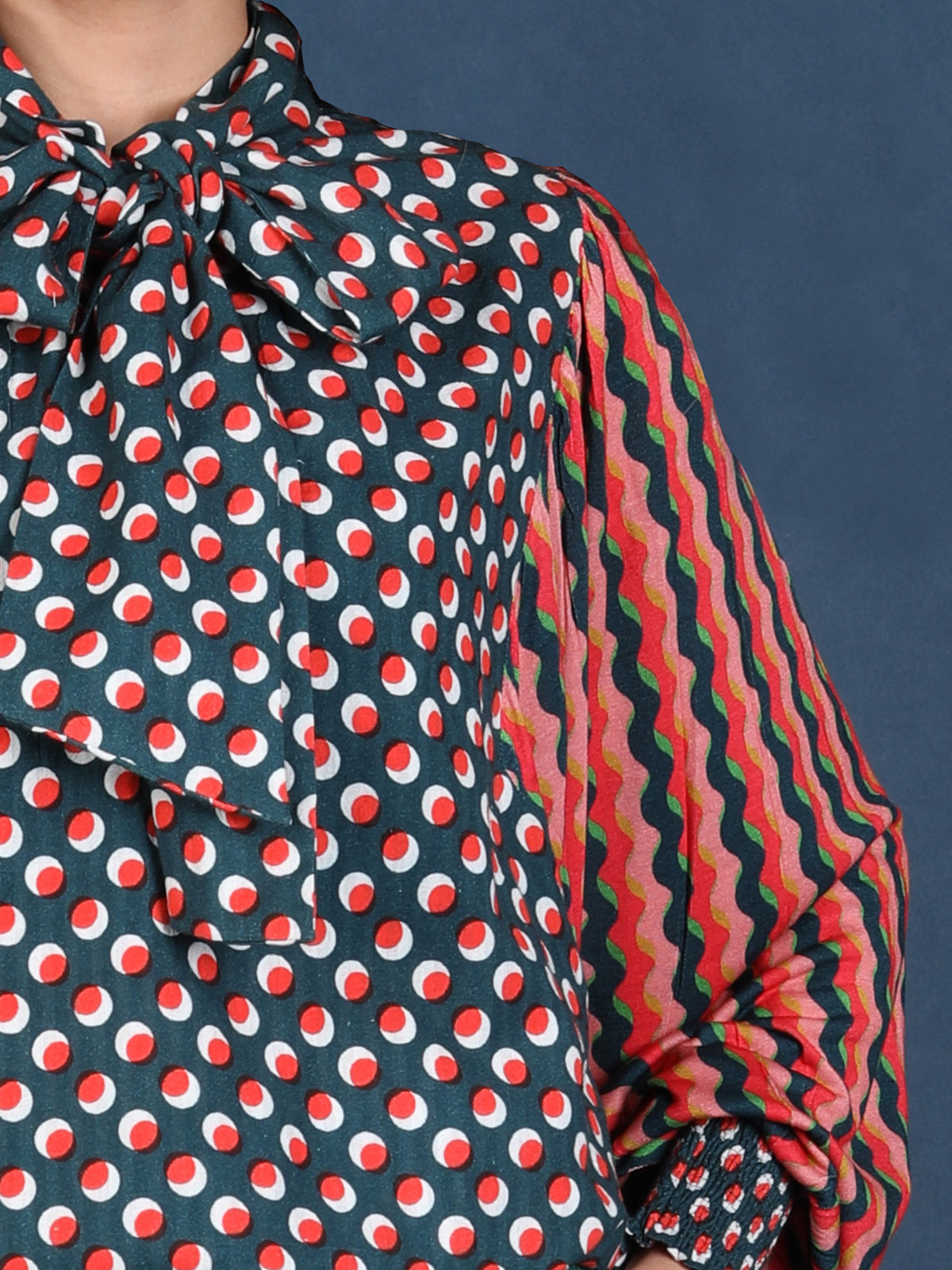 Elevate your everyday look with the LIBIA TOP. Featuring a high neckline with a front tie, polka dot print, and long sleeves with smocked cuffs, this cotton top blends charm and comfort in a relaxed fit. Complete your look with LIFE IS GOOD WIDELEG PANTS.